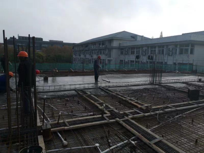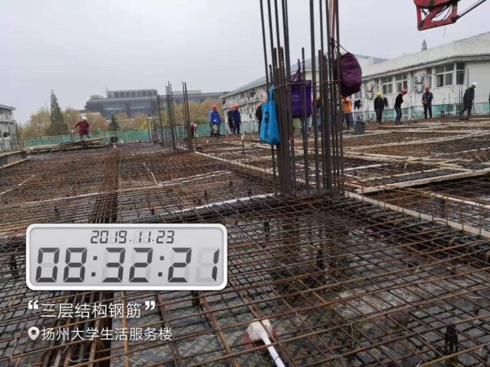 文汇路校区生活服务楼三层顶结构板钢筋和砼浇筑