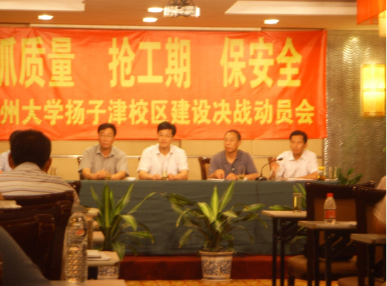 新学期开学,扬子津校区即将投入使用,目前,扬子津校区建设进入关键阶段。7月3日,基建处召开了以“抓质量、抢工期、保安全”为主题的扬子津校区建设决战动员会。副校长叶柏森、原副校长胡家兴出席会议。