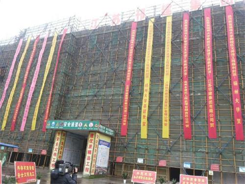 1月8日上午,扬子津校区文体馆工程主体结构顺利封顶。校党委书记夏锦文,副书记芮鸿岩,副校长刘祖汉、叶柏森,校有关部门、学院的负责同志,江苏邗建集团、扬州市建苑监理有限公司、上海华东建设发展设计有限公司等参建单位负责人参加了封顶仪式。 扬子津校区文体馆于2012年5月18日正式开工建设,总建筑面积48157 ㎡,规划有游泳馆、篮球馆、乒乓球馆、羽毛球馆、健身房等体育运动场地及大学生活动中心等,工程预计今年9月完工并投入使用。项目建成后,扬子津校区将增添一座新的标志性建筑。