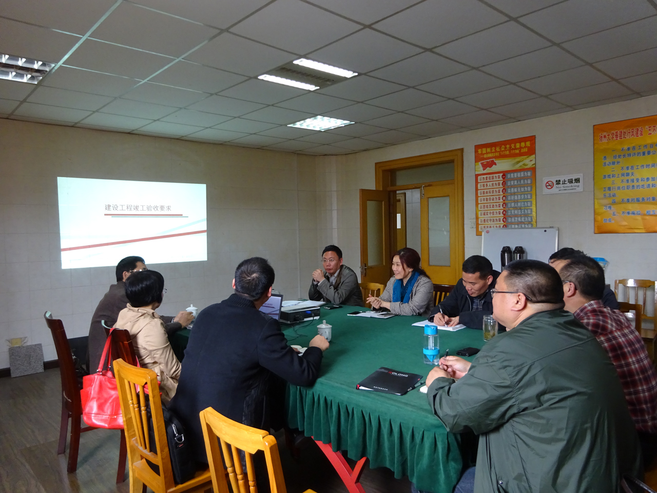 此次专题讲座内容丰富,联系实际,针对性强,又非常及时,通过学习提高了我处工程管理人员的管理水平,对文体馆工程竣工验收工作具有很强的指导性。基建处全体人员、文体馆工程土建、安装、装饰施工单位、监理单位的施工管理人员聆听了讲座。