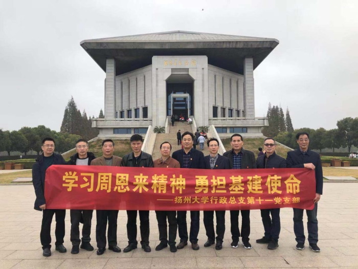 为贯彻落实“不忘初心、牢记使命”主题教育要求,激励全体党员继承和发扬党的优良传统和作风,进一步增强党支部的凝聚力、战斗力,2019年11月23日,基建处党支部组织党员和党外积极分子赴淮安周恩来纪念馆、故居开展“学习周恩来精神,勇担基建使命”主题党日活动,现场接受革命传统教育。