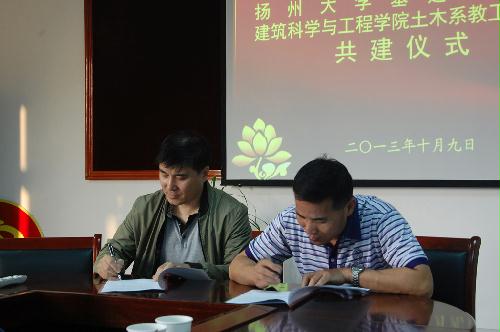 2013年10月9日下午,基建处党支部与建工学院土木系教工党支部在扬子津校区举行支部共建签约仪式。双方本着优势互补的原则,通过结对共建,推动务实、廉洁、创新、高效的机关作风,争取在为师生员工服务方面取得新提升,在加快学校发展的关键问题上取得新突破。仪式上,基建处党支部书记夏三水同志宣读了共建协议,双方党支部书记签订共建协议,双方支部党员参加了共建仪式并进行了座谈交流。