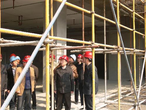 夏锦文来到扬子津校区文体馆工地现场,听取了基建处关于文体馆施工、工程管理等情况的汇报,详细了解该工程的整体功能布局和工期质量目标,仔细询问了篮球馆屋顶网架、叠合网梁楼盖、游泳池等设计施工问题,对基建处改进工作作风、建立工地巡查制度以及成立工地临时党支部的做法表示肯定。夏锦文要求基建处和邗建集团严格遵守国家工程建设规范和技术规范,切实加强工程项目管理,进一步提高工程质量,确保工程安全、人员廉洁,争创国家优质工程。他强调,基建处是为学校教学科研提供支撑保障的部门,要结合党的群众路线教育实践活动,针对师生员工反映的问题和专题民主生活会上查摆出来的问题,坚持边学边改、即知即改,扎实推进落实,进一步提升基建处管理水平,优质高效地完成学校的各项工程建设任务。
