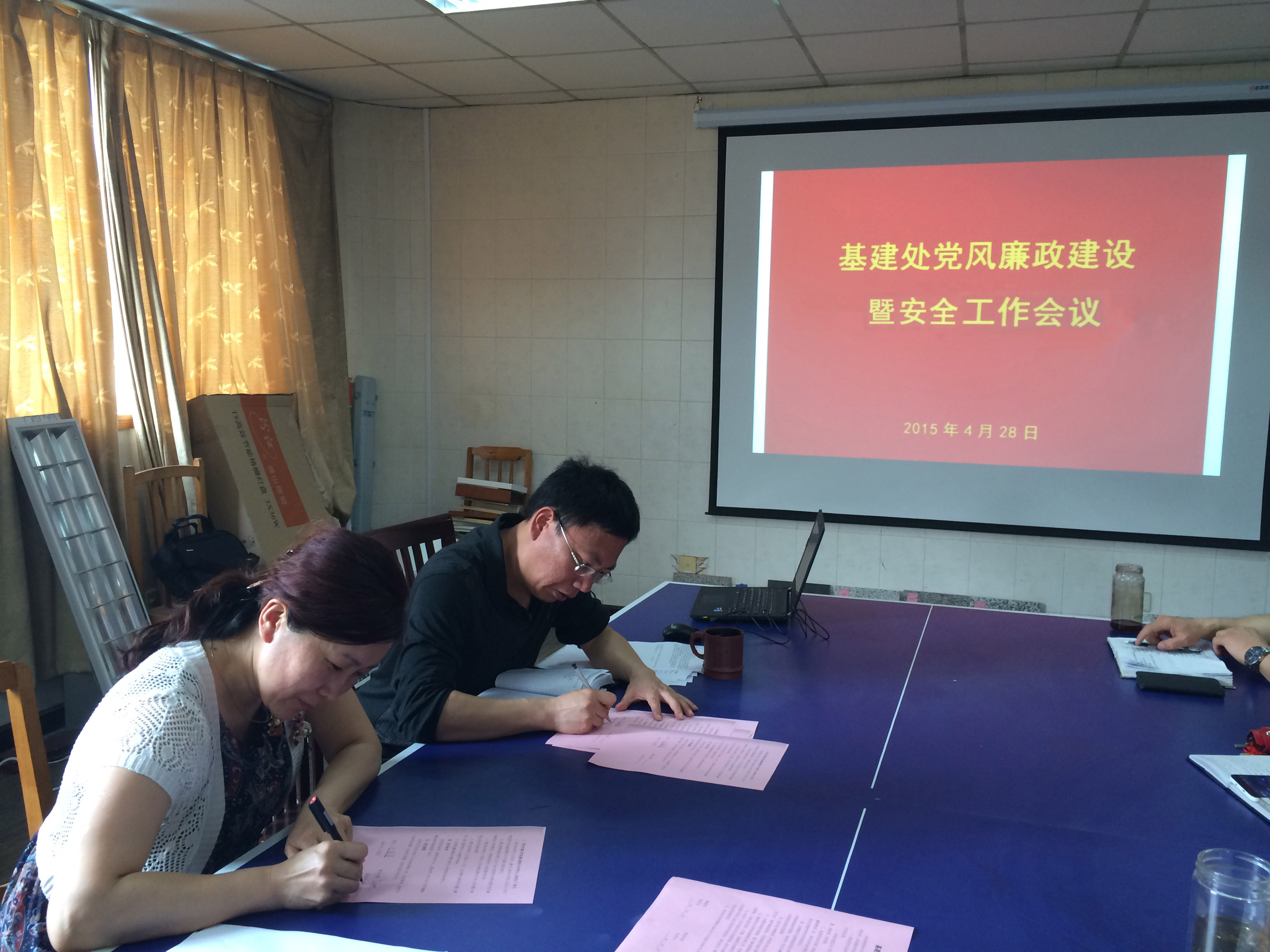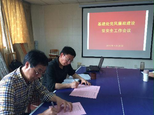 4月28日下午,基建处召开党风廉政建设暨安全工作会议,基建处全处人员参加会议。