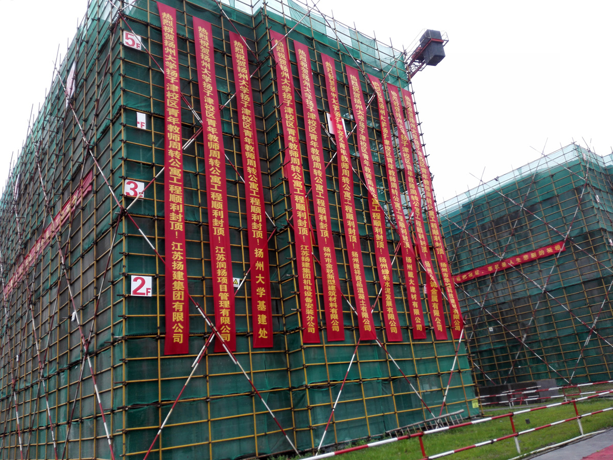 5月28日上午,我校扬子津校区青年教师周转公寓顺利封顶。副校长洪涛出席封顶仪式。