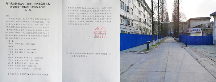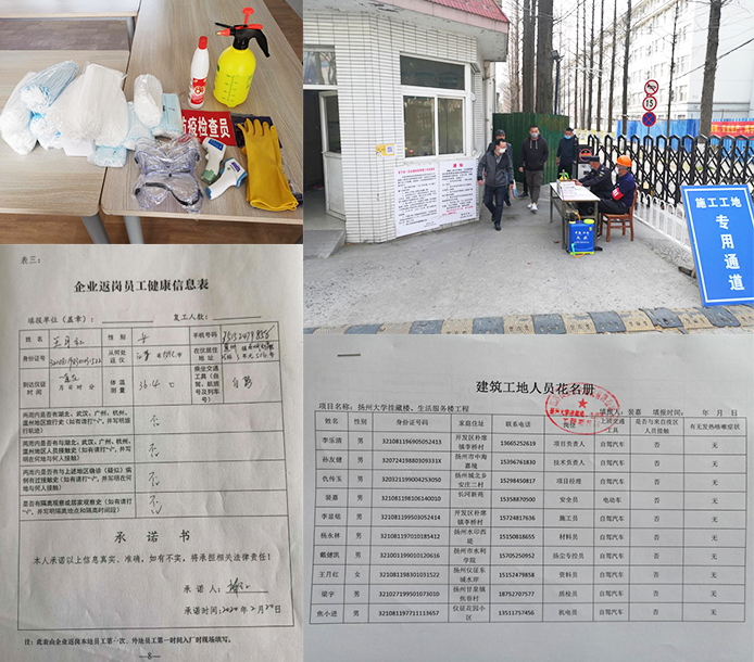 三是管理过硬。明确疫情防控管理体系,落实疫情防控人员、物资、设施,制定务工人员管控措施。要求所有务工人员签订疫情防控承诺书,严格落实项目所有务工人员执行实名制登记备案制度。对工地实行封闭式管理,在文汇路校区东门设置卡点检测,对进出项目人员实行严格登记管理和体温测试,本工程未设置食堂、宿舍、浴室,依规严格管理自带食品安全与分开就餐。