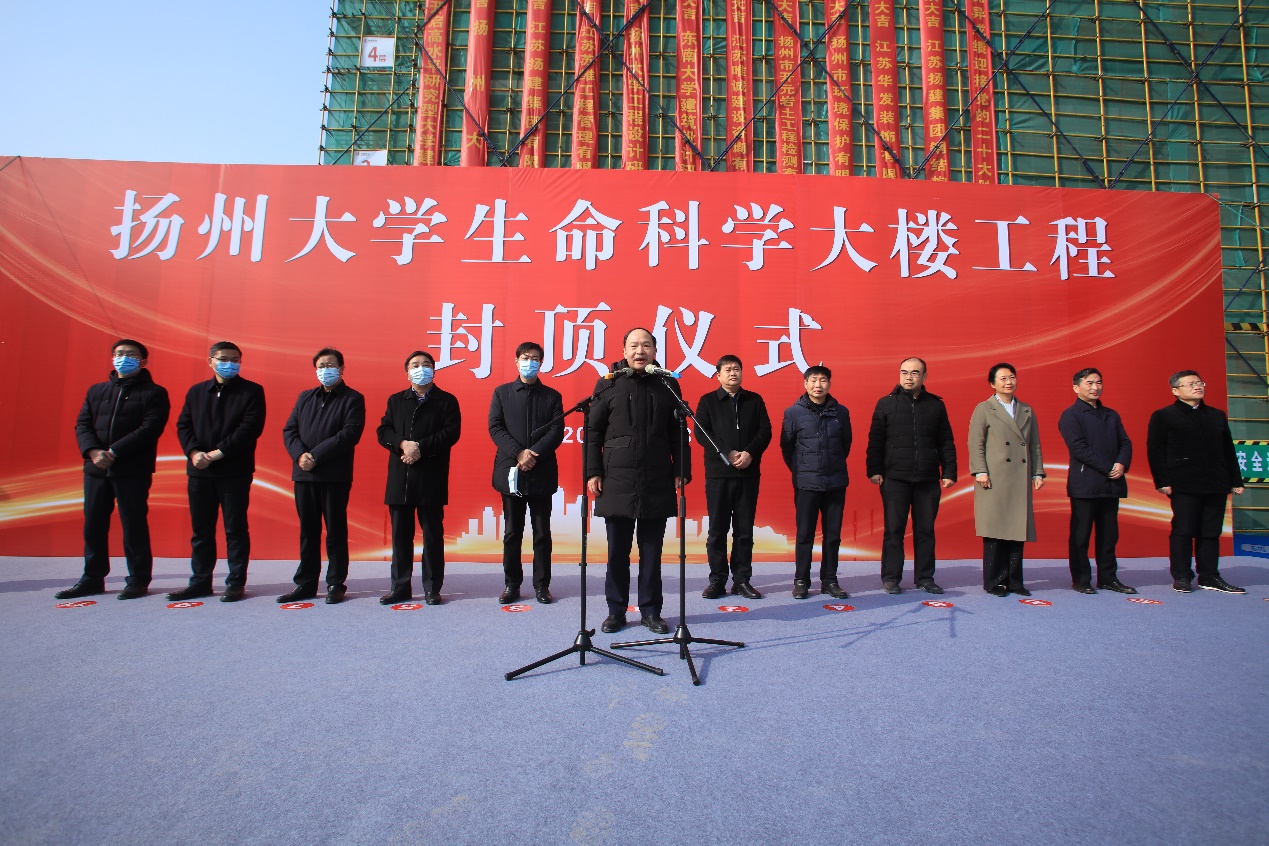 1月18日上午,文汇路校区生命科学大楼工程主体结构顺利封顶。校长焦新安,校党委副书记叶柏森,副校长黄建晔、陈亚平、刘巧泉、周如军等出席活动。副校长洪涛主持仪式。