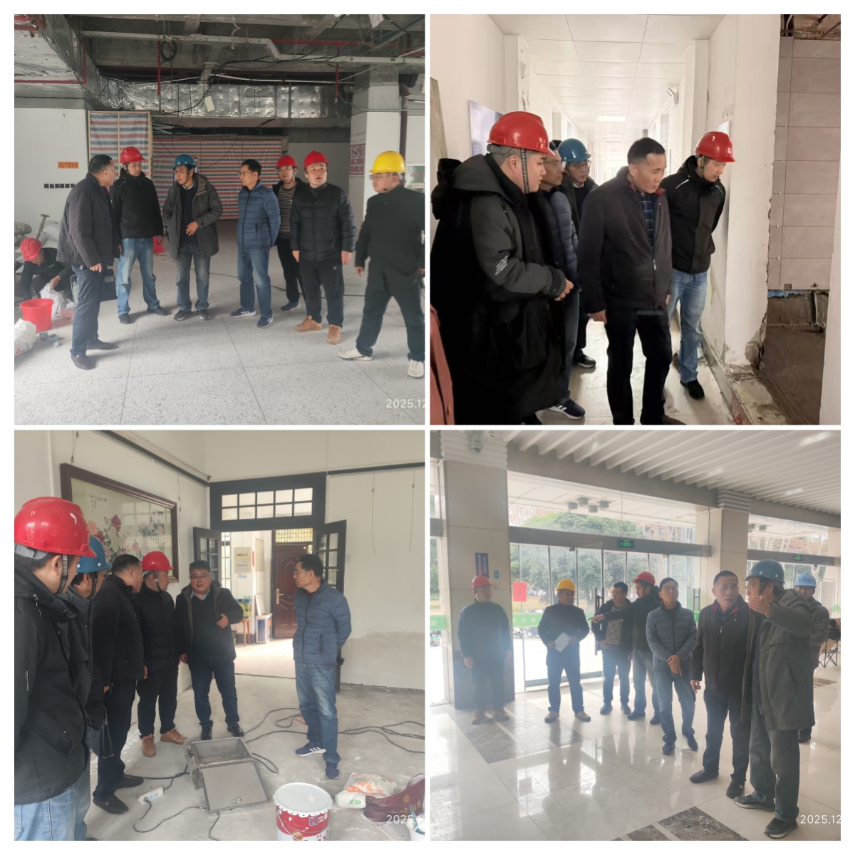 检查组深入图书馆智慧学习空间、离退休活动场馆维修和路北校区6号楼卫生间改造等项目一线,重点对施工现场安全管理、临时用电、消防设施及安全防护措施等关键环节进行全面细致检查。