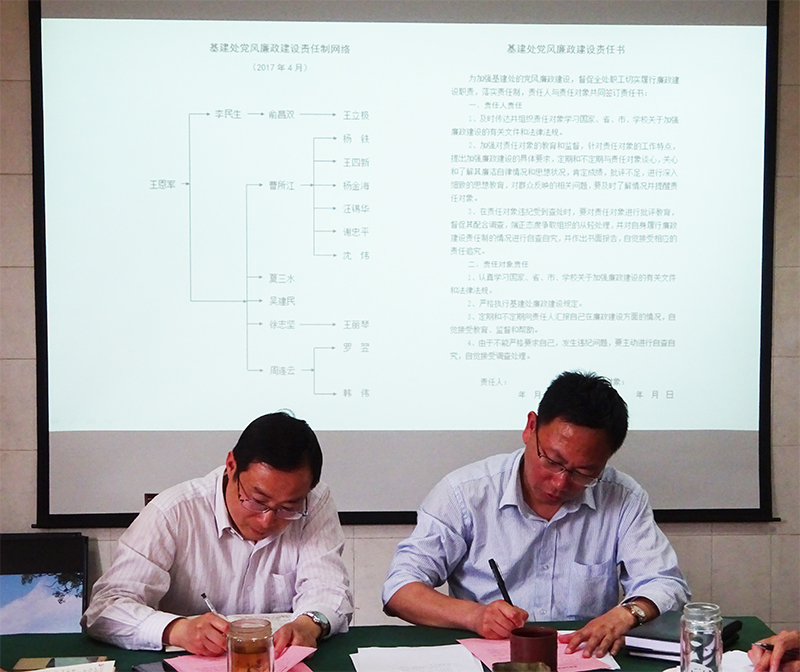 4月19日下午,基建处召开2017年党风廉政建设暨安全工作会议,基建处全处人员参加会议。