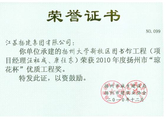 2010年12月获得扬州市优质工程奖“琼花杯”