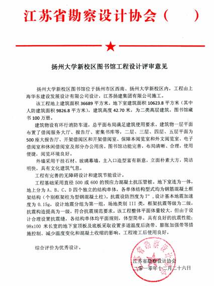 2010年12月获得江苏省勘察设计协会“优秀设计”